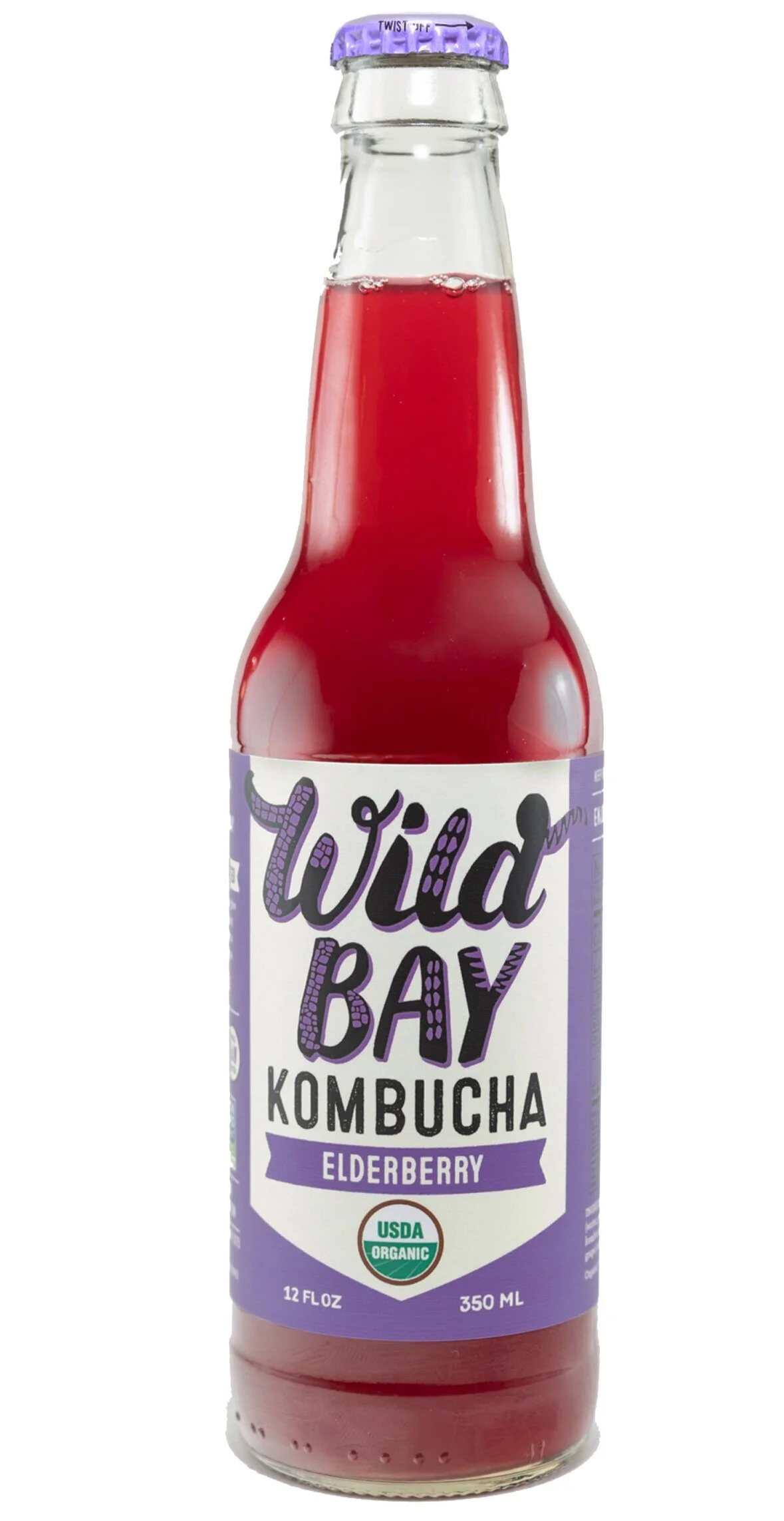 INGREDIENTS: Raw Wild Bay Kombucha (water, green tea*, evaporated cane juice*, kombucha culture), elderberry juice*, grape juice*, citric acid